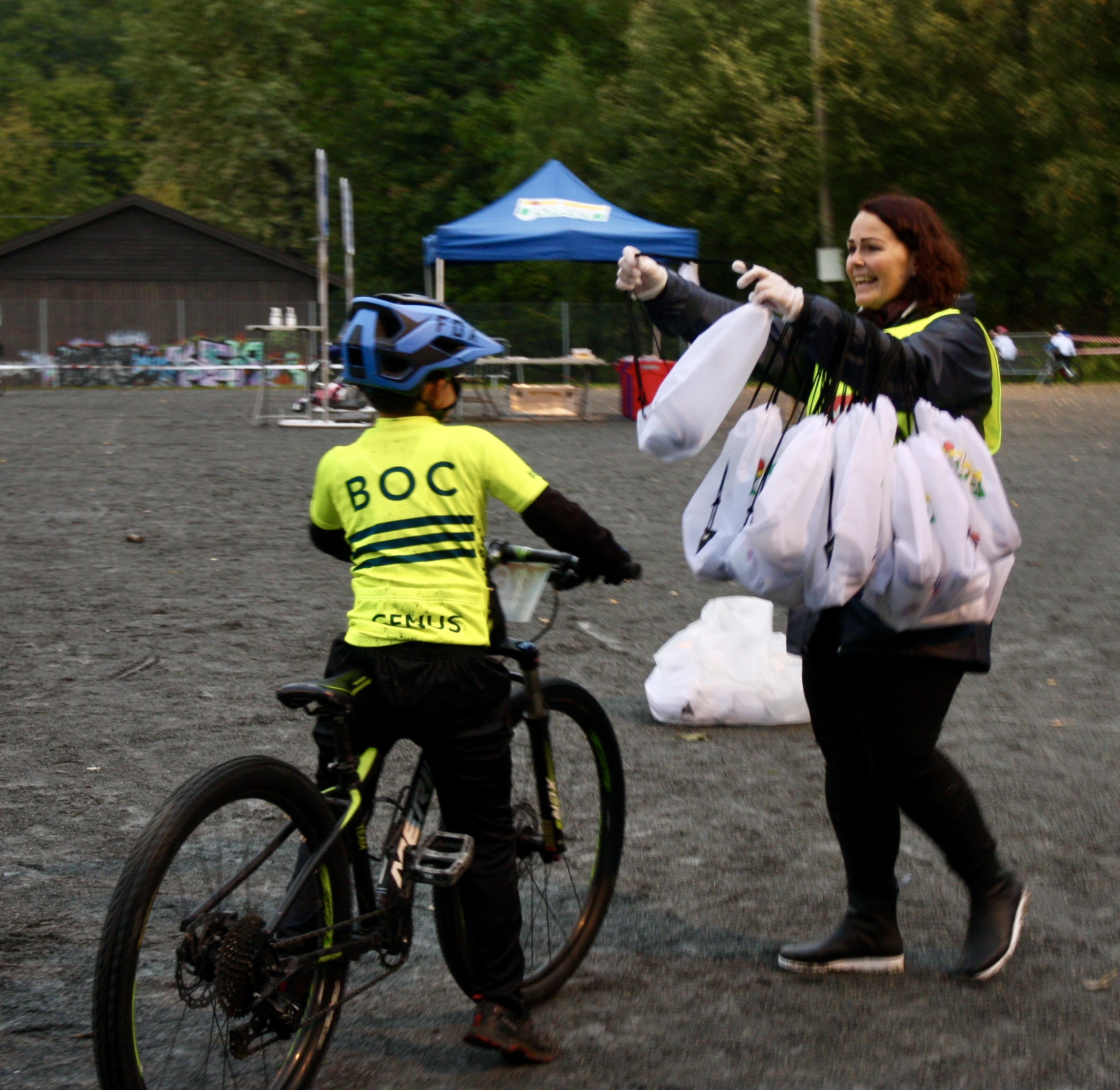 Endelig var vi tilbake i Bærum, nærmere bestemt ved den flokke sykkelparken på Bryn. Vi rigget oss til på grusplassen som ligger «vegg i vegg» med den nye pumptracken. Og denne kule banen var riktig så nyttig for barna mens de ventet på startsignalet for Kids-rittet. Bærum og Omegn Cykleklubb var av det rause slaget og stilte med utlån av BMX-sykler til bruk i pumptracken.