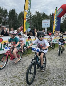 De minste med trehjulsykkel og støttehjul er først ut. Så 5-6 år, 7-8 år og til slutt 9-12 år.